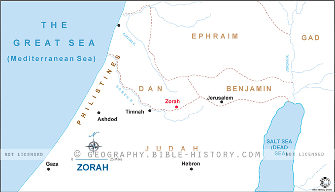 Explore the precise location of Zorah and its proximity to other biblical sites, offering insights into its strategic position.
